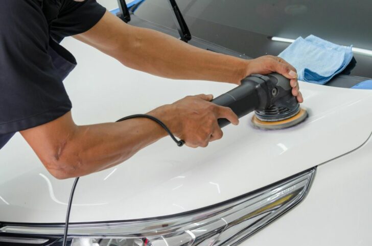 Polera bilens lack för att skydda bilens yta mot slitage och skador